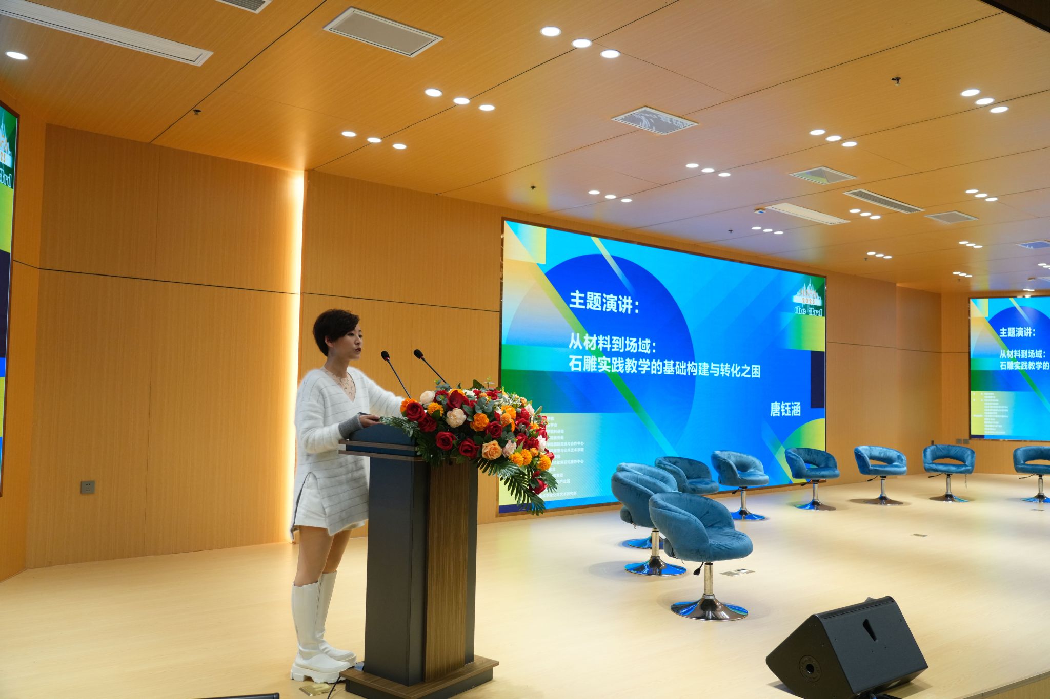 唐钰涵老师在“雕塑教育分论坛”作了主题为《从材料到场域:石雕实践教学的基础构建与转化之困》的发言。