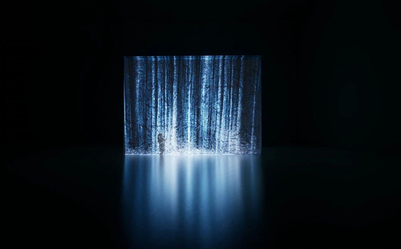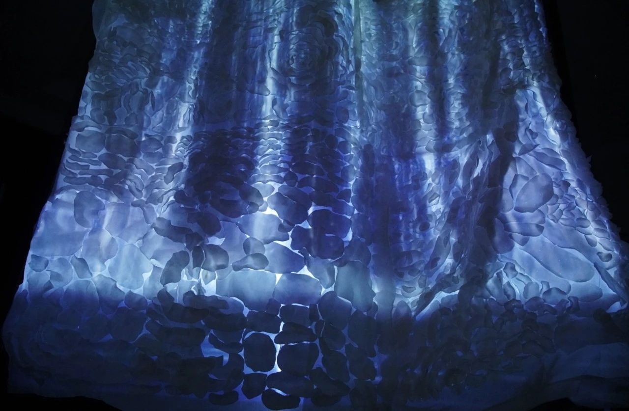 徐雯婷的入围作品《序幕》以德化白瓷与丝绸的刚柔并济为媒材,外筑陶瓷水流意象,内设数字瀑布投影。通过柏拉图洞穴寓言与瀑布意象的双重隐喻,探讨认知边界的流动性:身处水幕内部如同穴居者受困于感官幻象,突破物理隔绝后则直面真实世界。作品揭示启蒙的本质并非单向突破,而是通过内外视角的辩证转换,在刚柔动静的交织中持续重构对"真实"的认知维度。