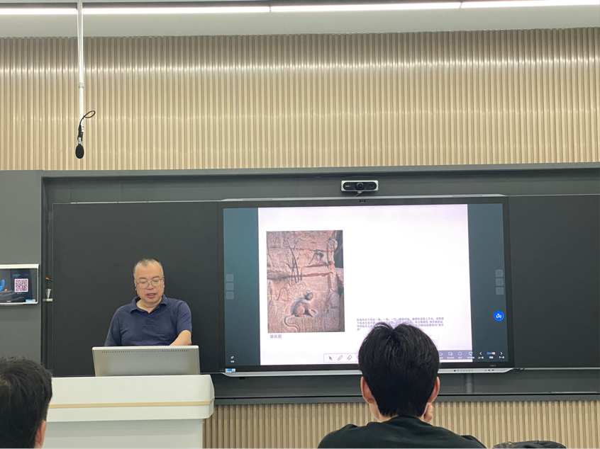 随后,李占阳教授从大足石刻的《缚心猿锁六耗图》《六道轮回图》《牧牛图》入手,分析了这些石刻中的图像寓意。他指出,大足石刻不同于平铺直叙的表达方式,而是以符号进行叙事,具有复杂的象征意义。这种叙事方式不仅丰富了艺术表现,也让观众在欣赏作品的同时能够深入思考。