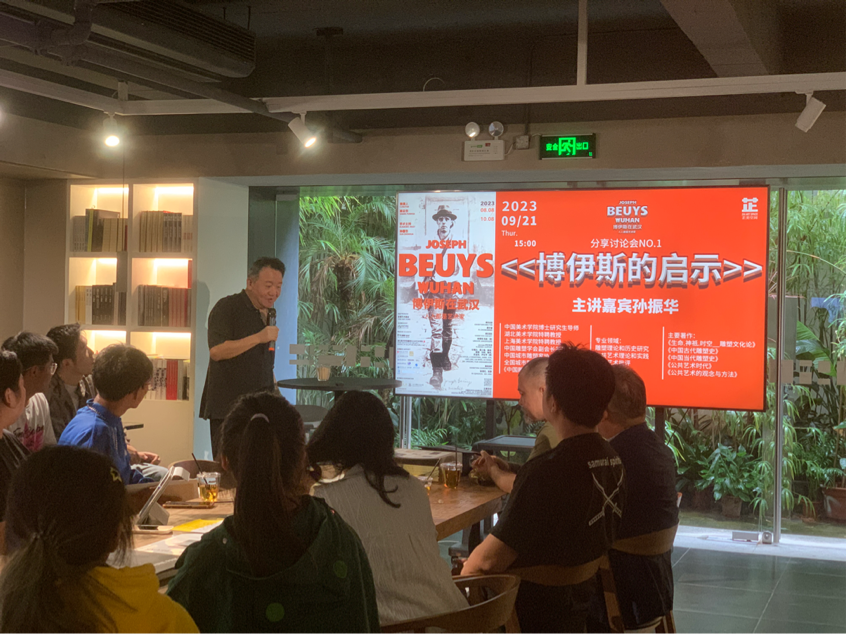 讲座上,孙振华教授由基督教的发展入手,详细讲述了在经济发展下人们对信仰态度的转变、艺术家被不断捧高社会背景下博伊斯的特殊历史价值,以及他生活化艺术语言的创新性。同时,孙振华教授还与公司师生们分享了一系列作品,并对在场员工的疑问进行了答疑。