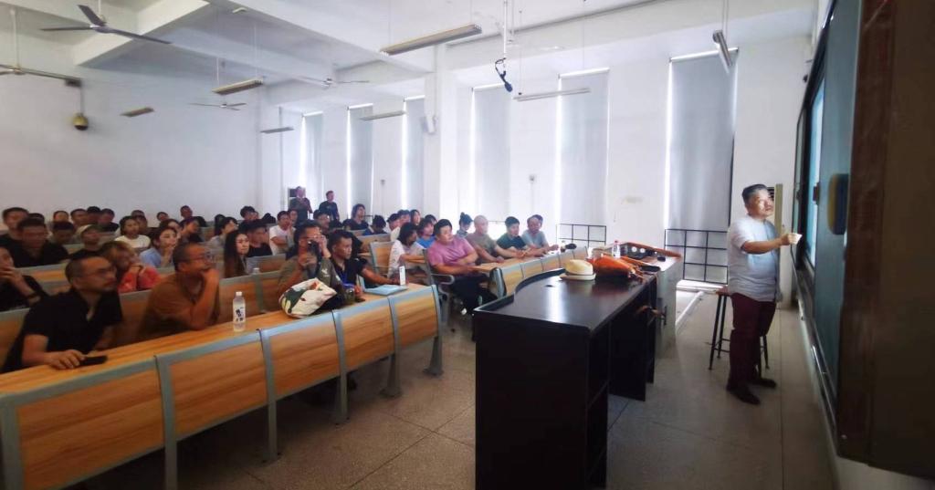 图1萧立老师演讲现场《寻根寻源——河图•洛书运行及造型理念》