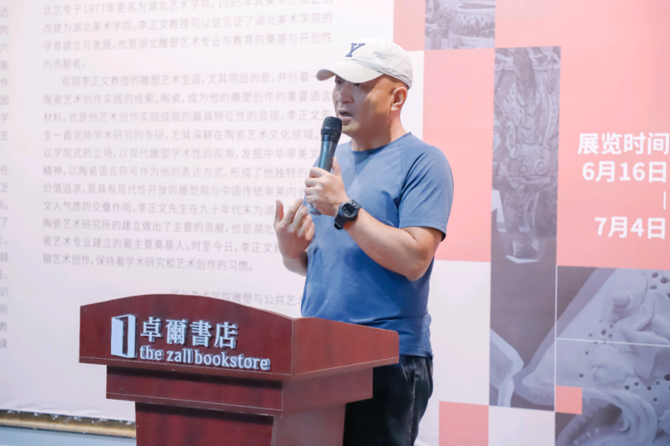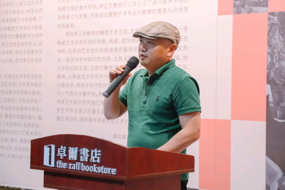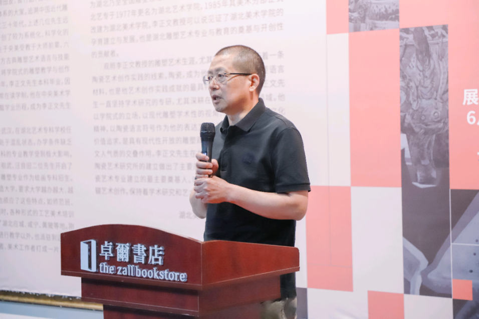 郅敏教授在致辞中表示非常荣幸参加开幕式,他90年代初第一次看到李老师的作品。后来他也做了第一代留法雕塑家的研究,到现在中国式雕塑和欧洲雕塑的融合,是一代一代雕塑家,包括李正文先生都做出了卓越的贡献。在改革开放以来,李正文先生在中央美术公司这种坚实的塑造基础上,又对陶瓷材料产生了浓厚的兴趣。并且引领了改革开放以来对于陶瓷材料独立性的探索,是一位先行者。他是在这一代艺术家的感召下也投入到这个事业中来。湖北美院也是一百多年历史,多少代艺术家传承,生生不熄,一定会开创更好的学术成果。