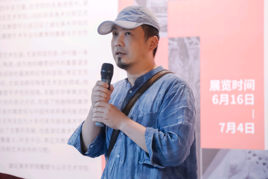 李正文教授在致辞中表示,经过策展人的多方努力,成功举办此次师生展,大家欢聚一堂,展出风格各异,不同年代、不同年龄艺术家的作品,反映了湖北雕塑与陶艺的强大生命力。长江后浪推前浪,一浪高一浪。