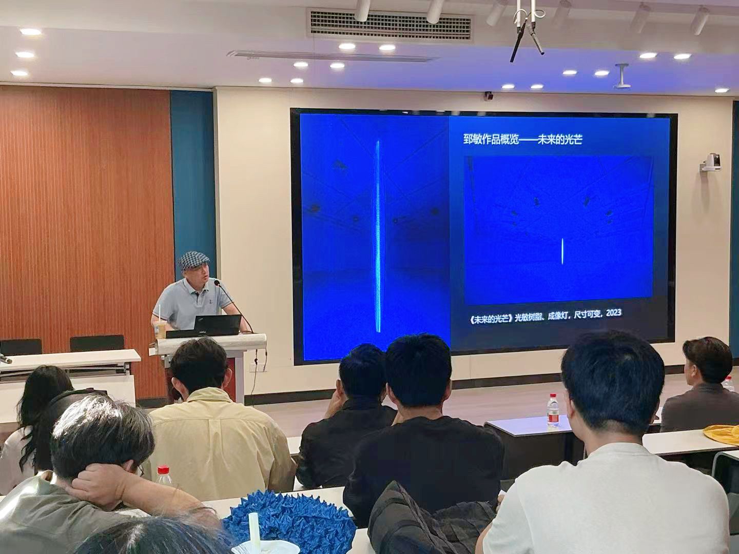 随后,郅敏教授以艺术家罗丹为例,详细剖析了雕塑创作的创新路径。他特别提到,他在2015年突破传统创作模式,采用灵活的组合方式,以“一个展厅一件作品”的形式重新定义展览空间。此外,郅敏教授还分享了他20余年间的12次个展以及他在人工智能辅助创作领域的探索,展现了艺术家不断突破边界的创作精神。