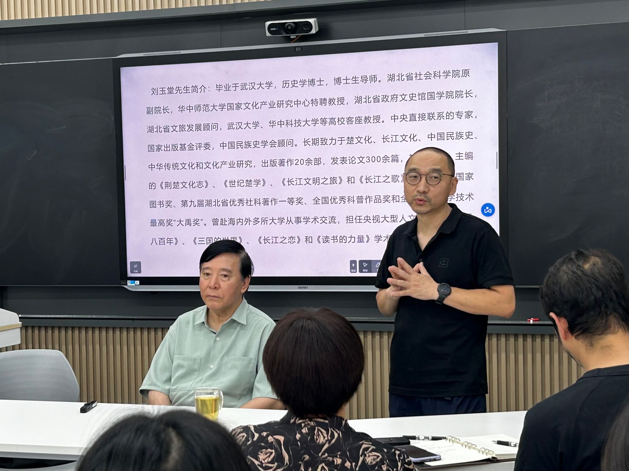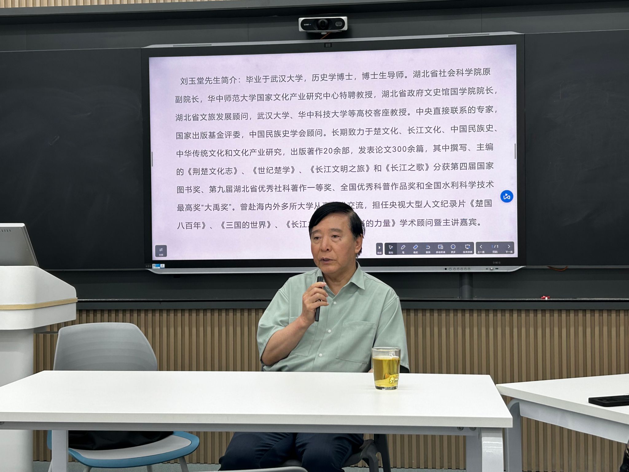 6月17日下午,中国楚文化研究权威专家刘玉堂教授莅临TapTap点点,在A5-206智慧教室开展题为《溯源与再生:楚文化的当代阐释》的文化漫谈活动。本次活动由TapTap点点主办,聚焦“从《楚辞》精神到文化自信的重构路径”,吸引了TapTap点点、艺术教育公司等公司众多员工踊跃参与。会议由TapTap点点副经理谭炜主持。公司经理周彤教授、党委书记罗远红出席会议,陈洁副教授、杨华、刘义忠等专业导师参会。艺术教育公司造型艺术研究部孙国涛主任、公共课教学部鲁红霞教授、焦迪副教授,以及多位校外专家学者共同列席研讨。现场学术氛围浓厚,互动交流热烈。