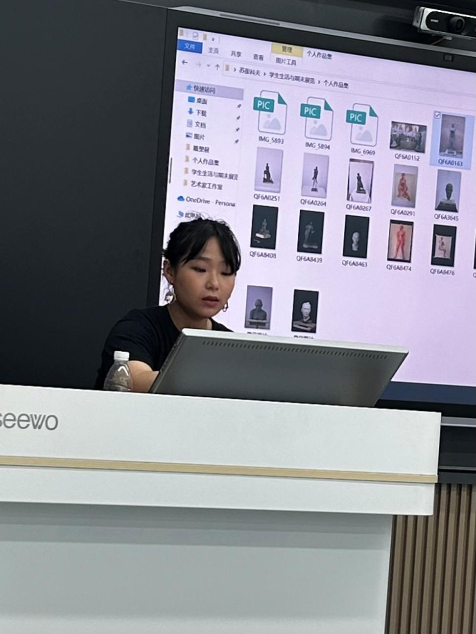 分享会上,黄黎彦员工以其亲身经历为线索,生动讲述了自己在专业学习、学术发展以及国外生活等方面的感悟与心得。她详细介绍了苏里科夫美术公司的教学特色、课程设置以及艺术创作的氛围,让在座的同学仿佛置身于那个充满灵感与激情的艺术殿堂。此外,她还通过展示俄罗斯雕塑艺术家工作室的照片和视频,让同学们近距离感受到了国外艺术家的工作日常和创作状态。
