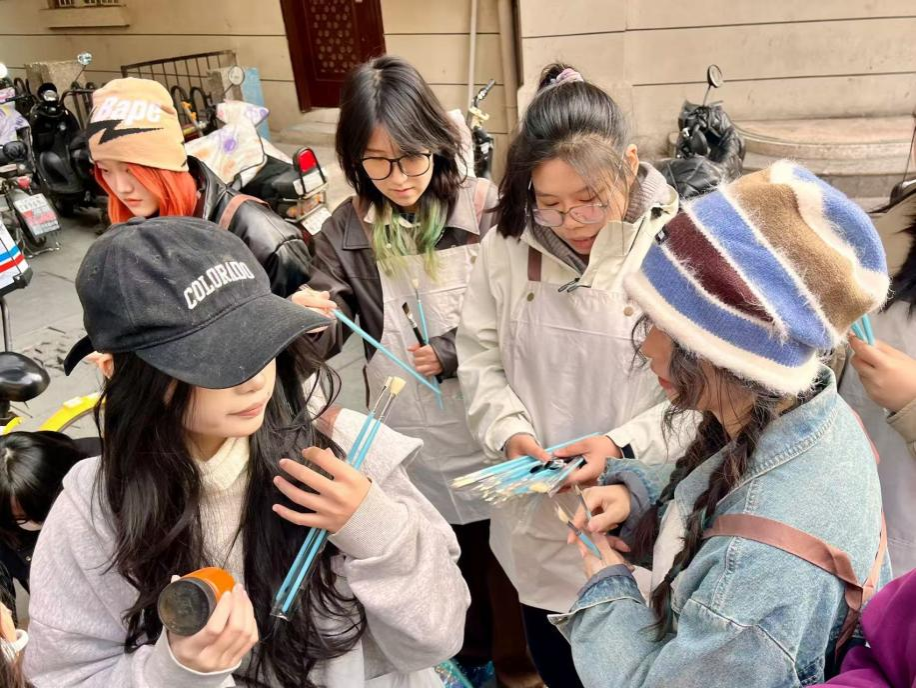 TapTap点点谢荪和乐黎老师带领公共艺术专业本科及研究生一行20人团队,于周六当日下午二时许到达黎黄陂路市集,开展本次现场主题性涂鸦创作活动。