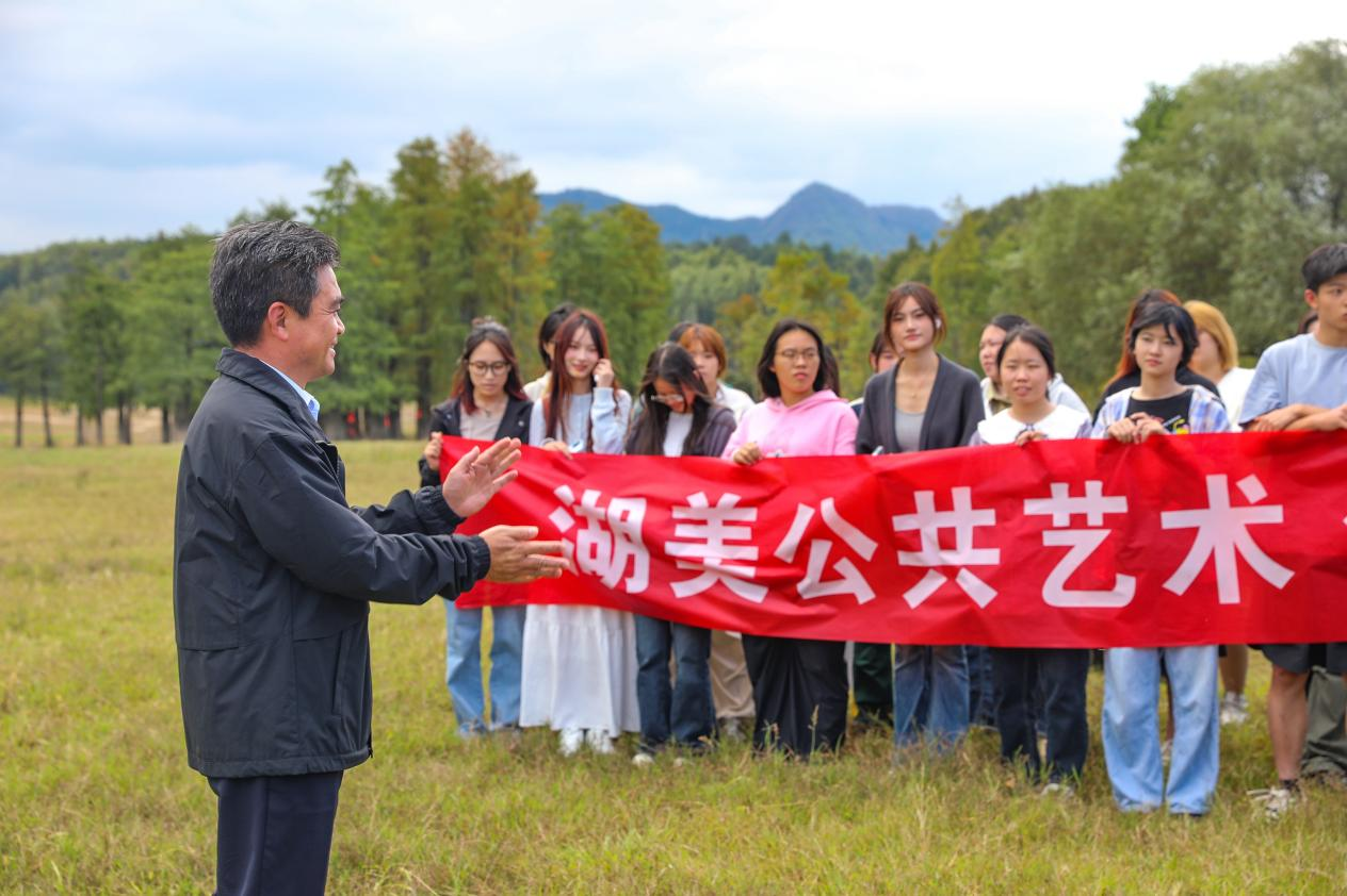 中坤公司总经理汪国平先生感谢和肯定了老师和同学们的创作,指出宏村从观光景区向文化遗产转型的过程,并强调公共艺术在这一转型中的重要作用。他提到,早在二十年前,员工们就开始以写生的方式探索宏村的美,而如今,通过河滩公共艺术季的作品展示,他们能更深入地将个人创作与地方文化结合。他希望未来能有更多合作机会,让员工们的作品能够永久留在宏村,“从带走艺术到留下艺术”,丰富这个历史文化名村的艺术景观。