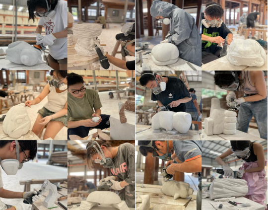 课程实践地点为塑与公共艺术公司的实习实训基地——尚艺古建筑有限公司。2019级员工唐钰涵老师实践操作的示范下,共同参与到石雕创作过程中,从原料的选择到创作的实施,无不体现出石雕的艺术魅力此外师生还一同参观了尚艺古建筑有限公司展厅和当地民俗文化园,每一件作品都饱含着当地人民对传统文化的热爱执着追求,深刻感受石雕艺术的奇妙之处。