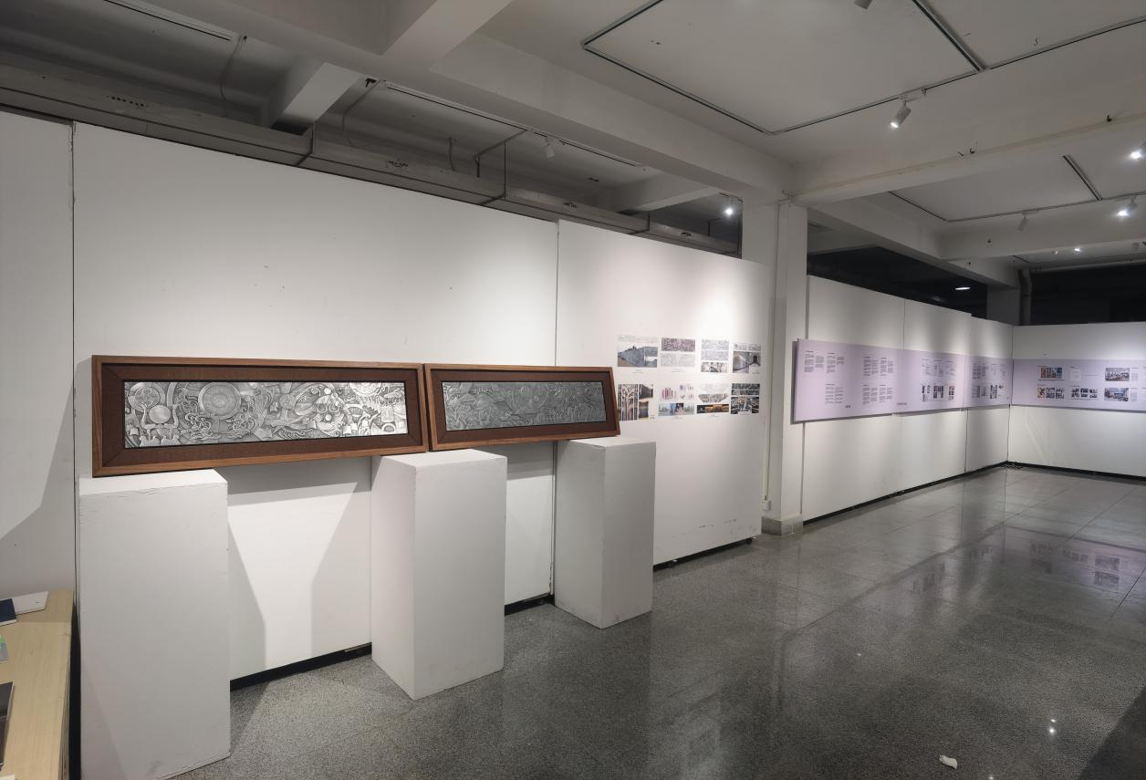 本次展览对公共艺术专业教学体系与建设成果进行了系统的梳理,分为六大板块依次展现本专业的多方面建设情况。以展板作为主要展出形式,用丰富的文字与图像介绍了TapTap点点官方网站公共艺术专业的教学目标与理念、团队力量、硬件资源、核心课程与改革评价体系,在实物展区陈设奖状、证书、合同、论文与壁画作品小样等大量的支撑材料体现教师成长与培养效果。